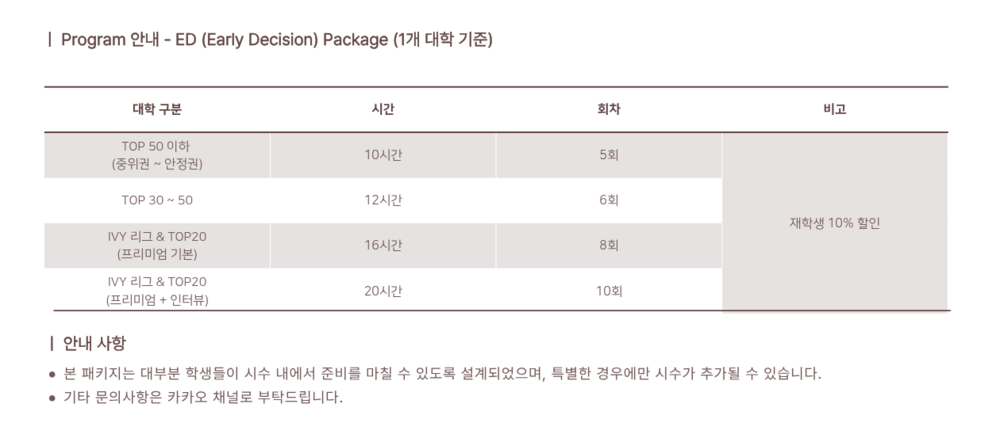 Please contact Kakotalk Channel to find a suitable essay expert according to each student's dream major, university and personal schedule.